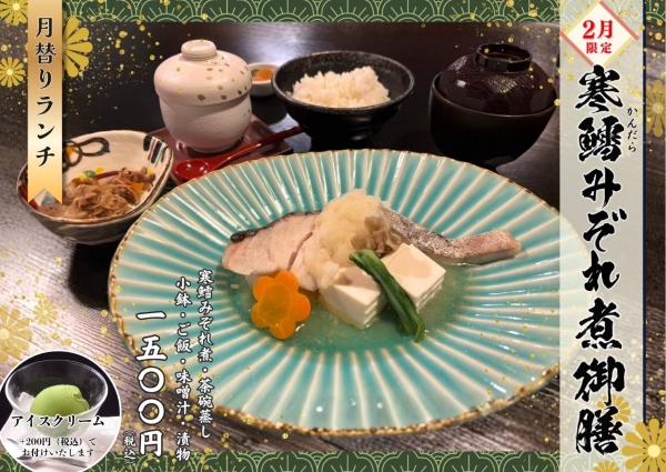 2月日替わりランチ 2026-02-03 09:15:37 いつもご利用ありがとうございます。《2月限定日替わりランチ》 寒鱈みぞれ煮御膳優しくてホットする『鱈のみぞれ煮』是非、ご賞味下さい🎶いけす鶴八 新栄店